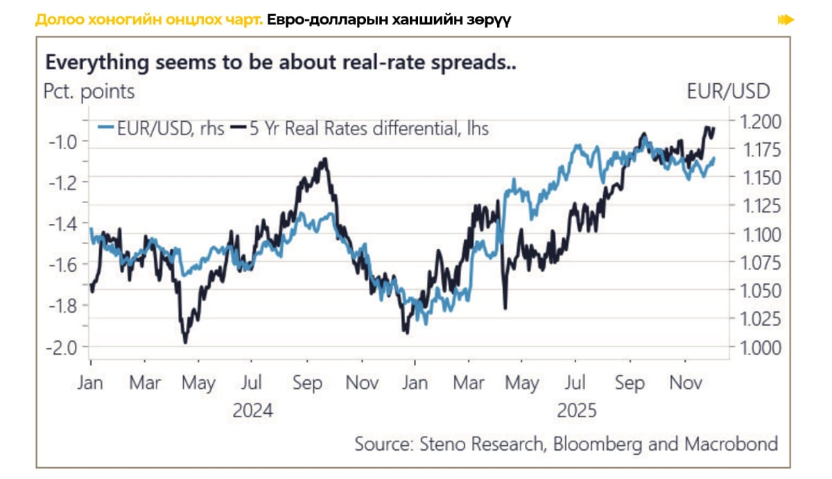 Холбооны Нөөцийн Сан(ХНС)-ийн даргаар Кевин Хассетт томилогдож магадгүй гэсэн таамаглал нэмэгдсэнээр ам.долларын ханш үргэлжлэн буурах төлөвтэй байна. Хэрэв тэрээр ХНС-ийн даргаар томилогдвол хүүг хурдан хугацаанд бууруулах магадлалтай ба 2026 онд конгрессын сонгуулийн өмнө хүү нэлээд буурна гэж үзэж байна.